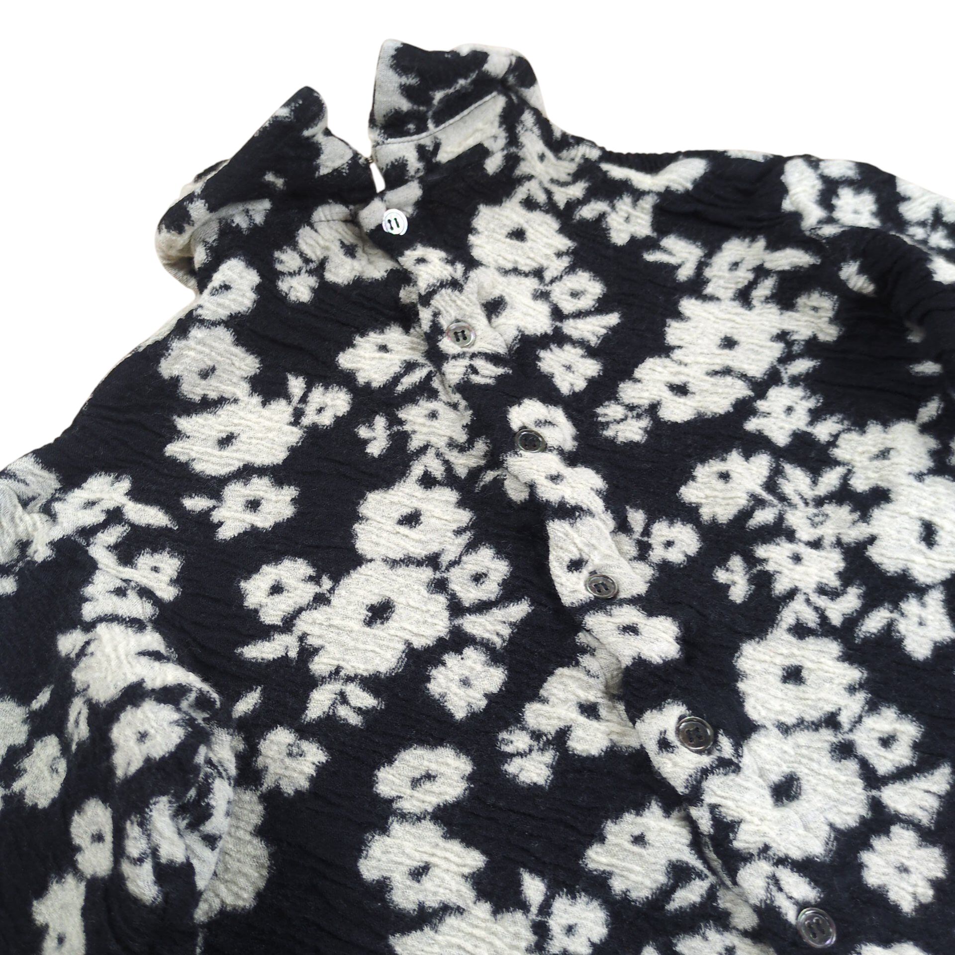 Flower Pattern Back Button Wool Round Collar Blouse