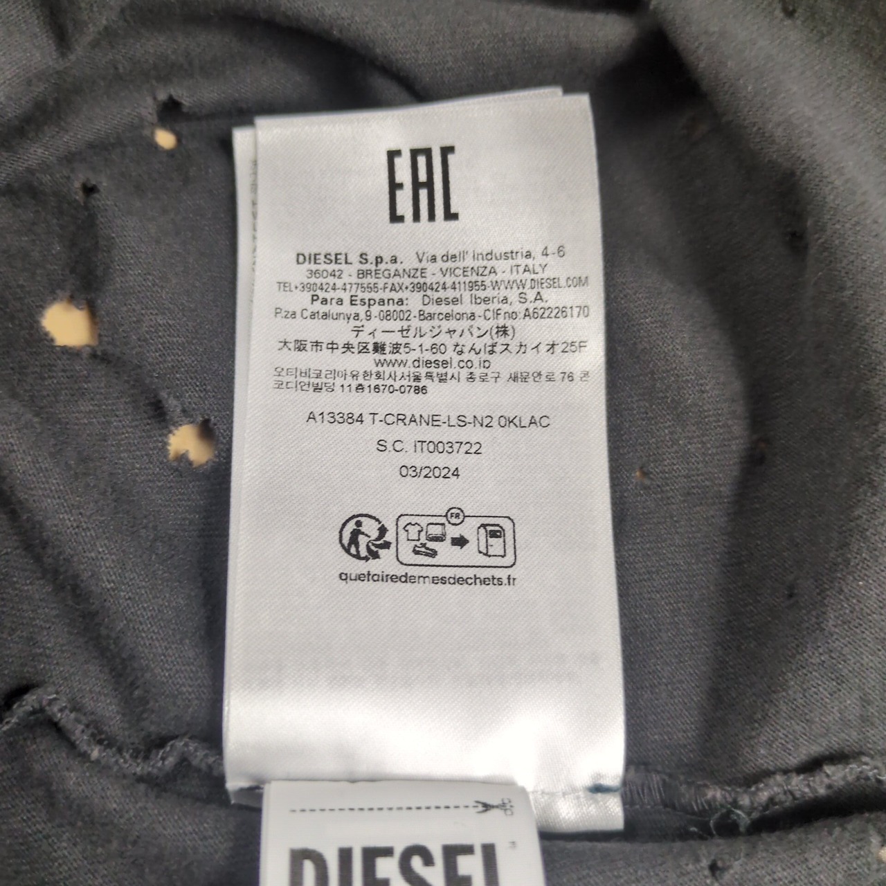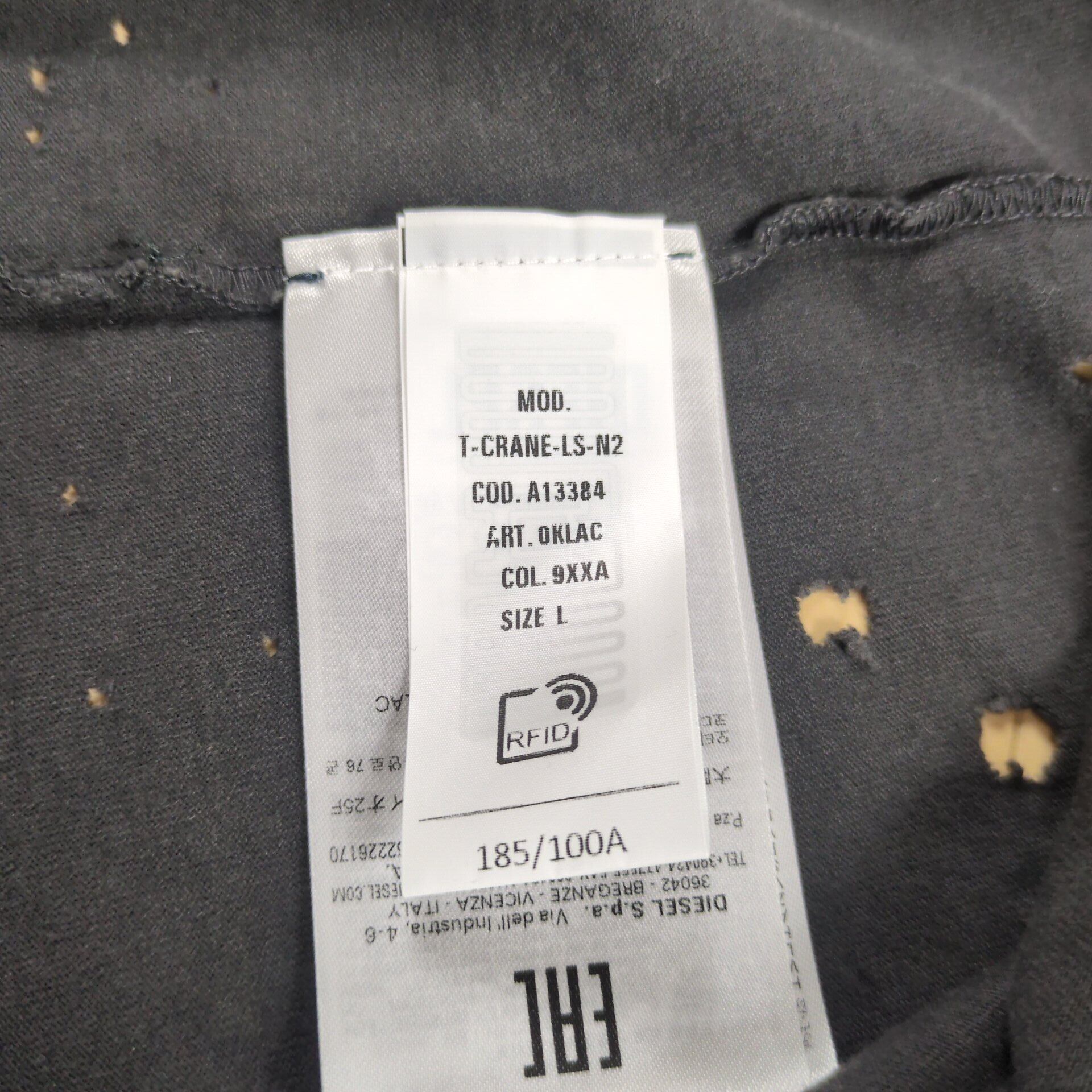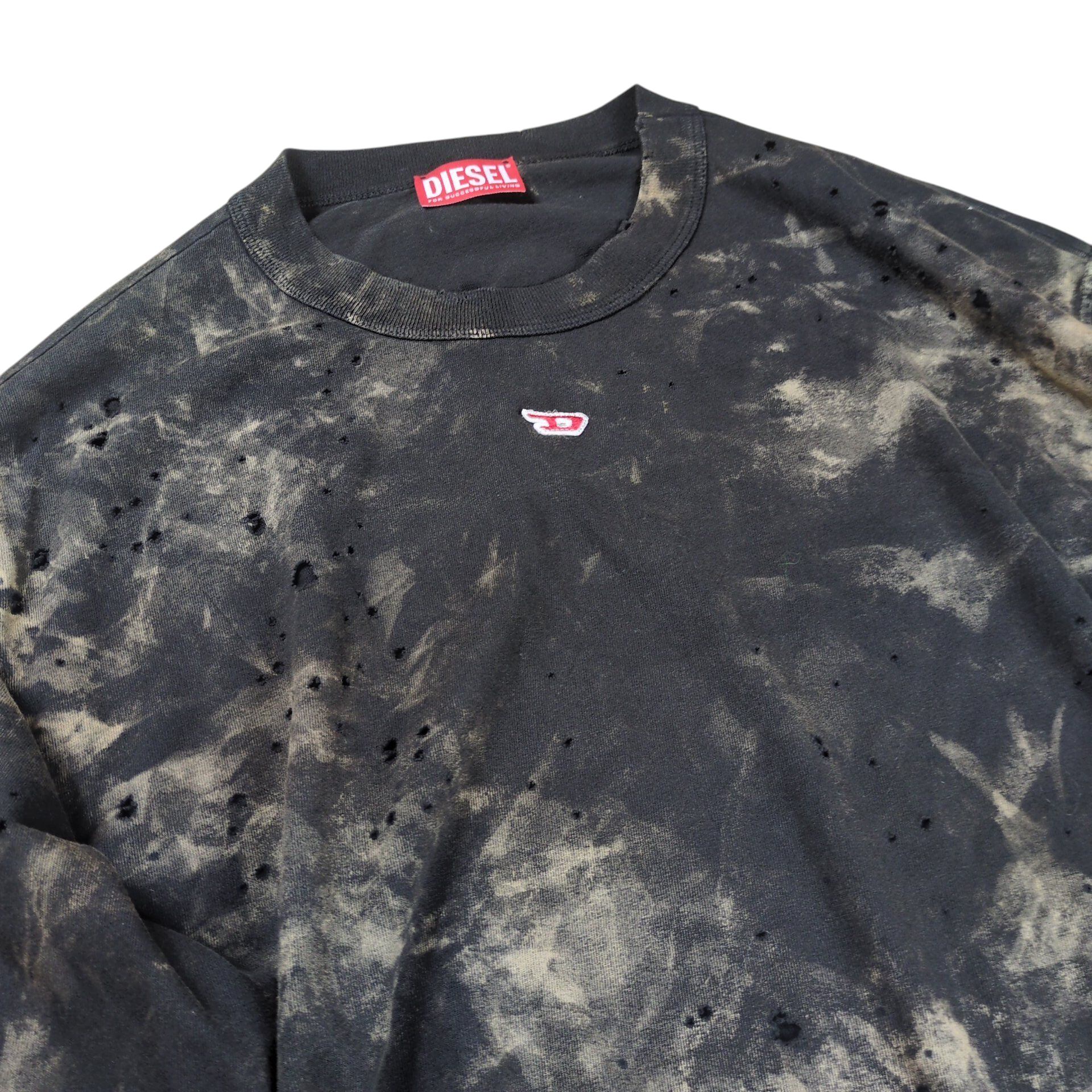 "DIESEL" D Logo Tiedye Crashed Oversized L/S Tee T-CRANE-LS-N2