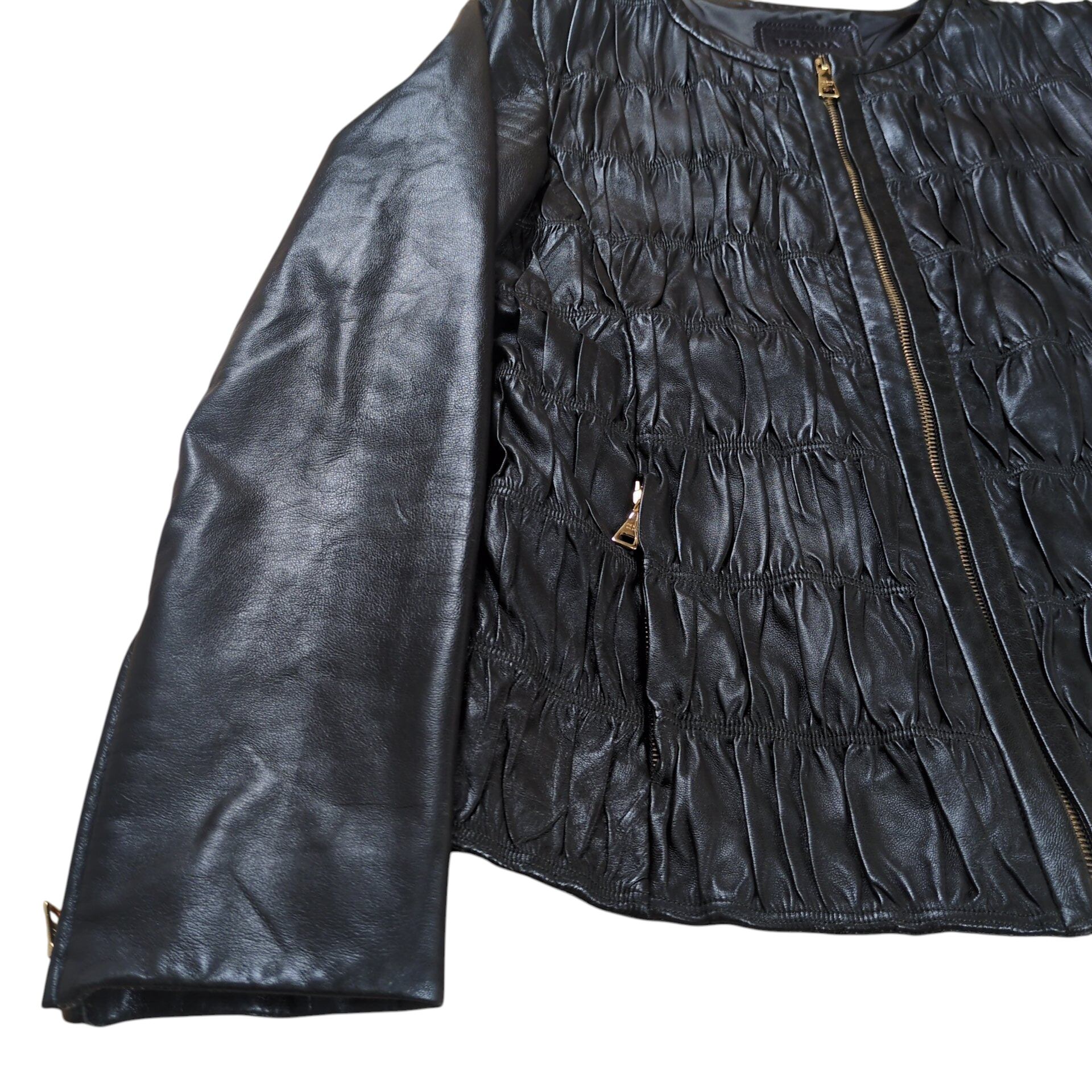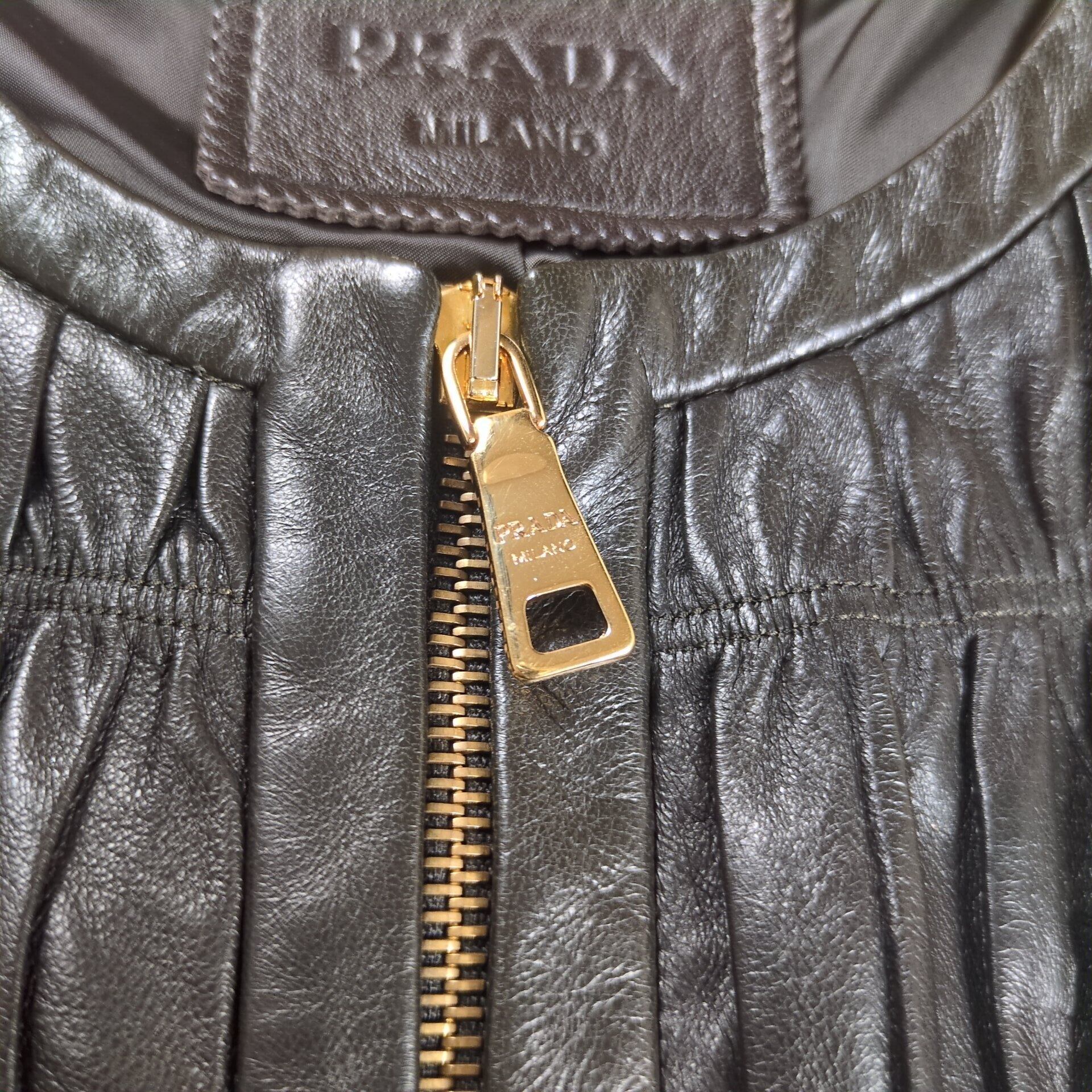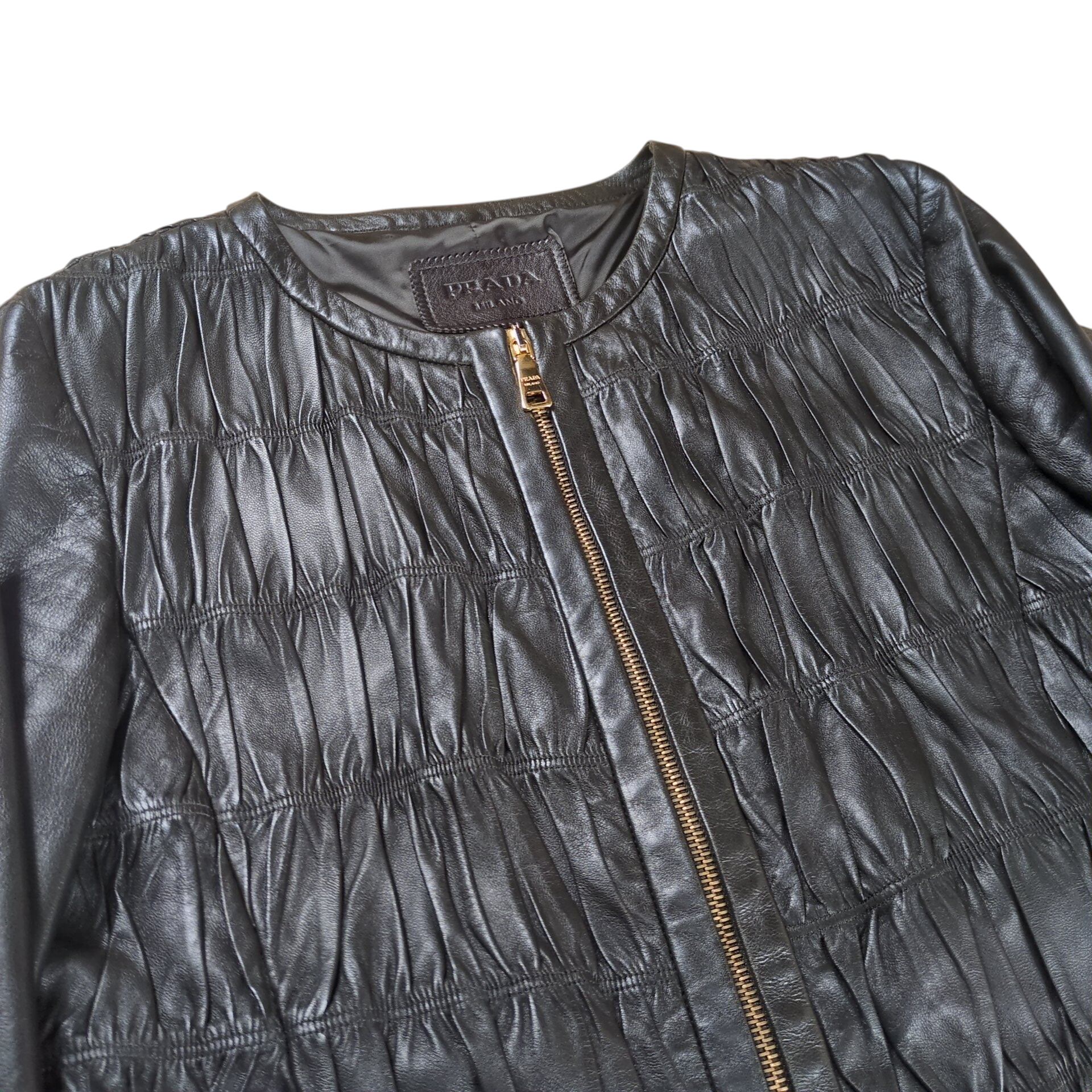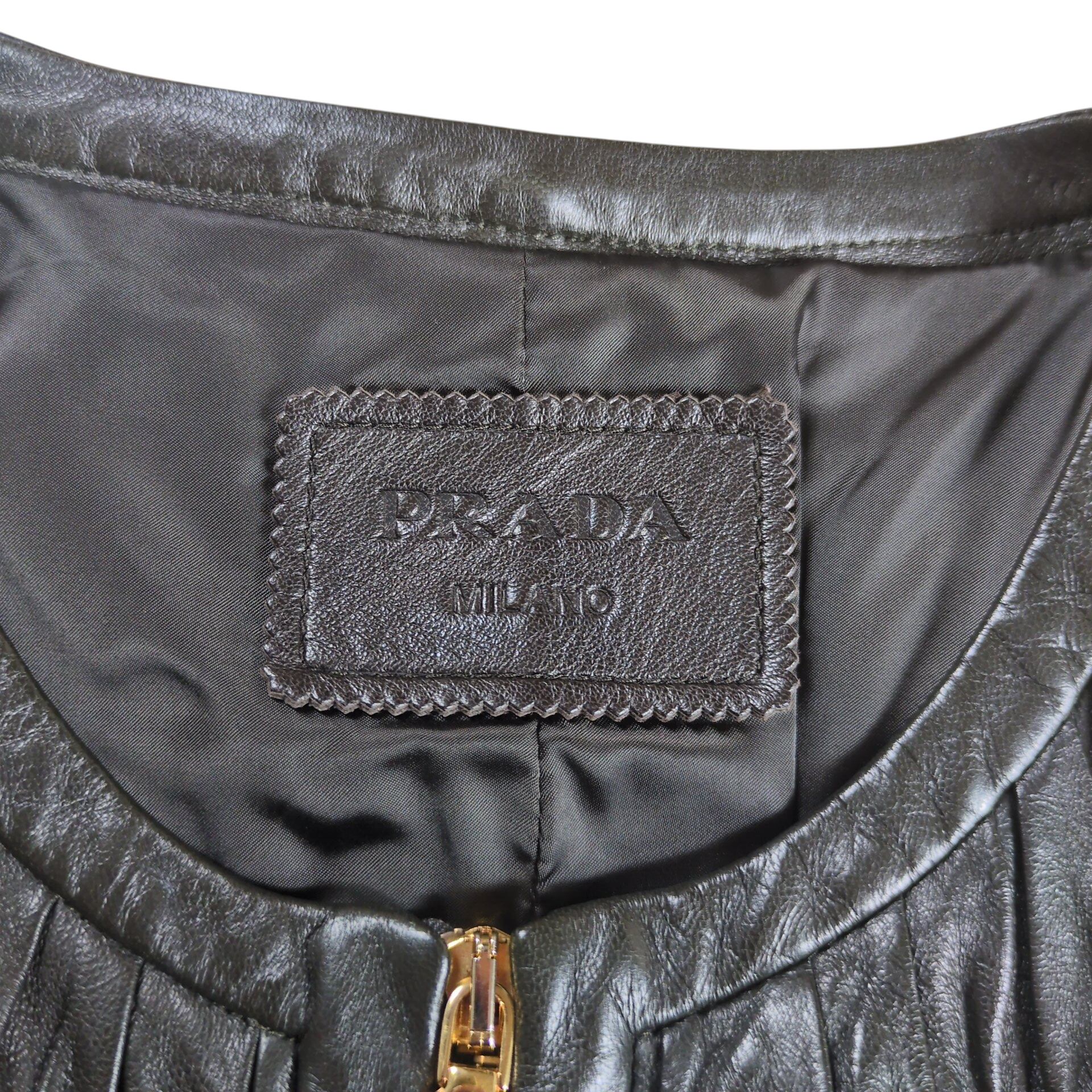 "PRADA" Metal Logo No Collar Leather Jacket
