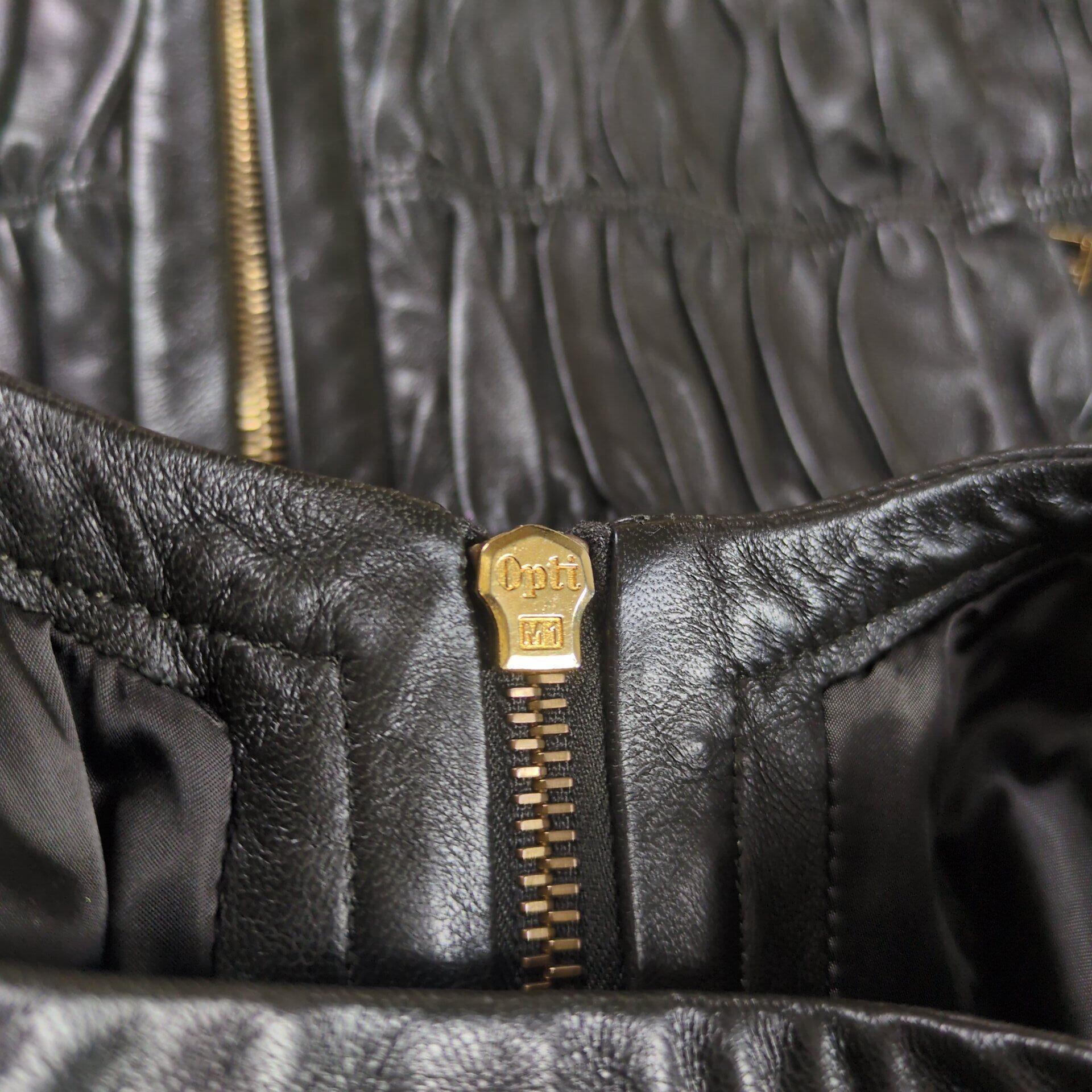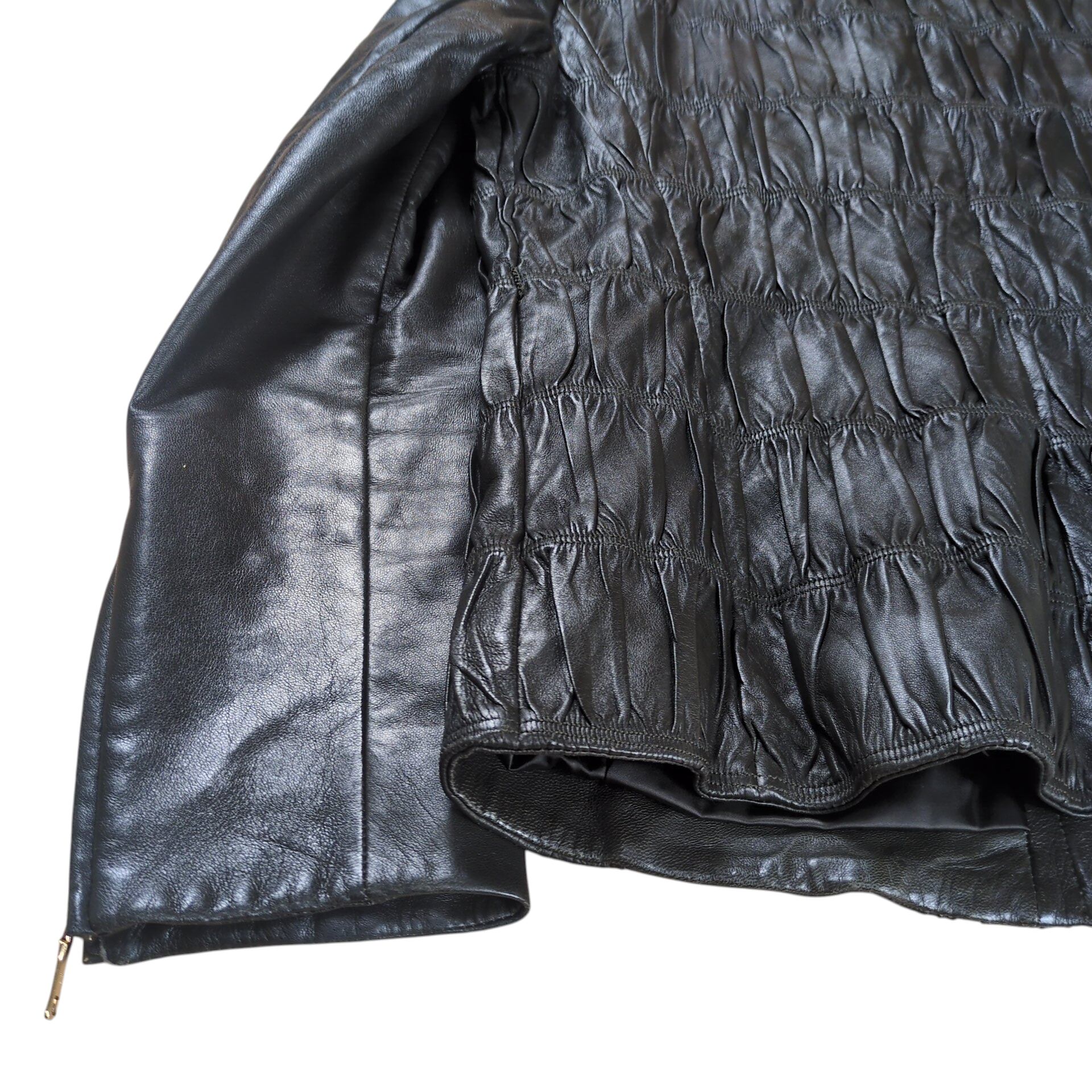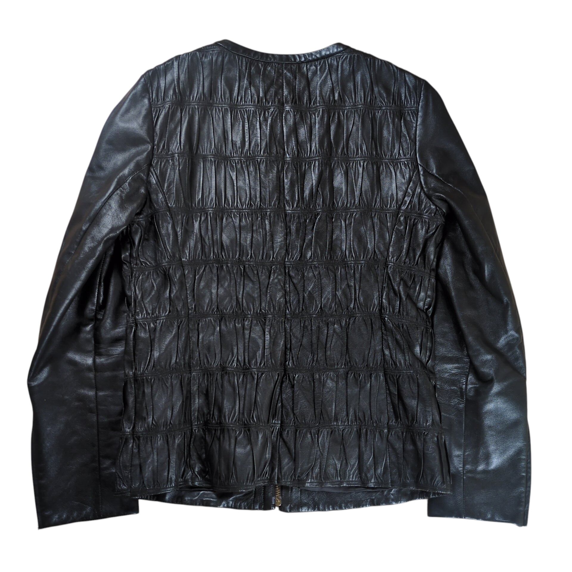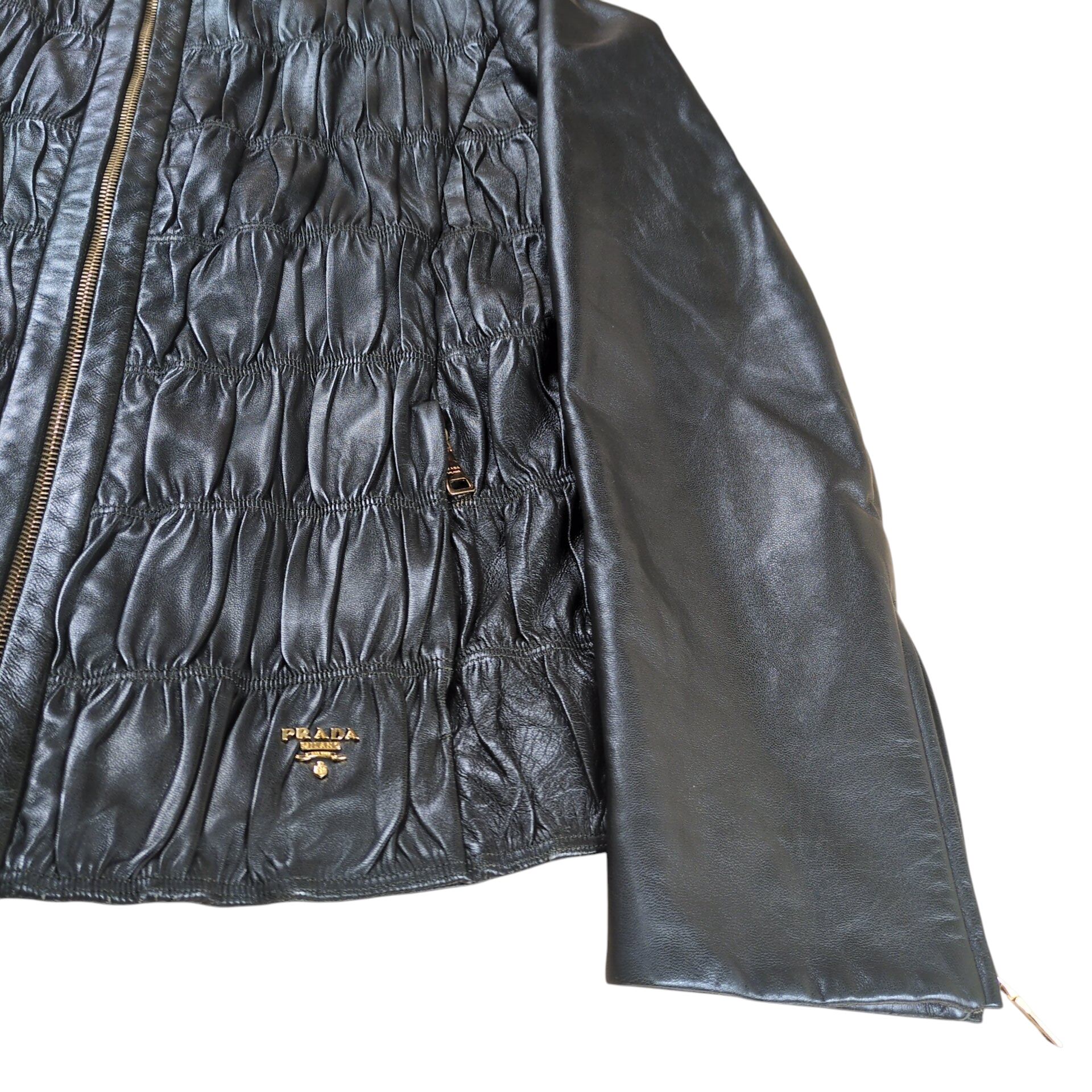 "PRADA" Metal Logo No Collar Leather Jacket