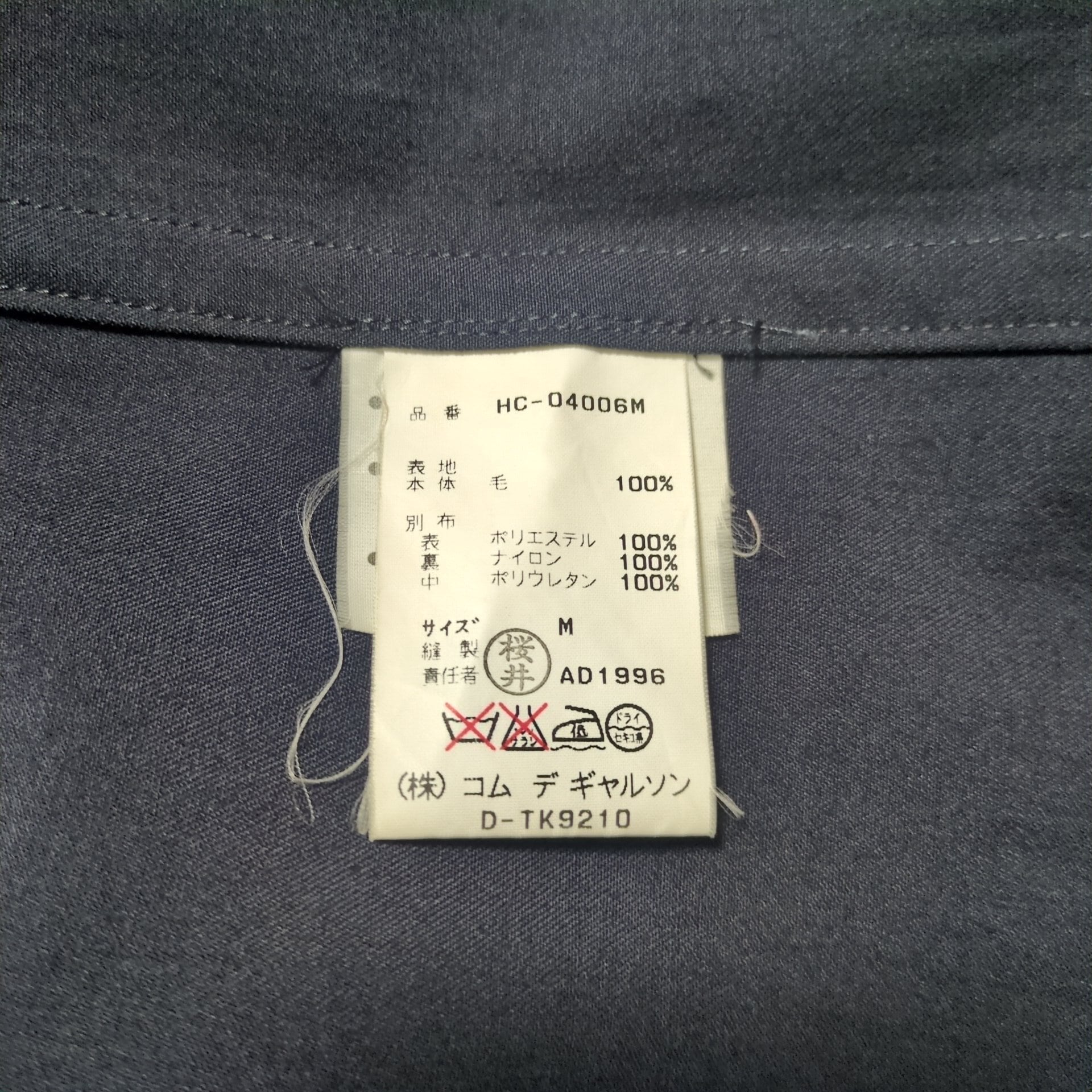 "COMME des GARCONS HOMME" 1996AW Wool Gabardine Zip Up Hooded Super Long Coat