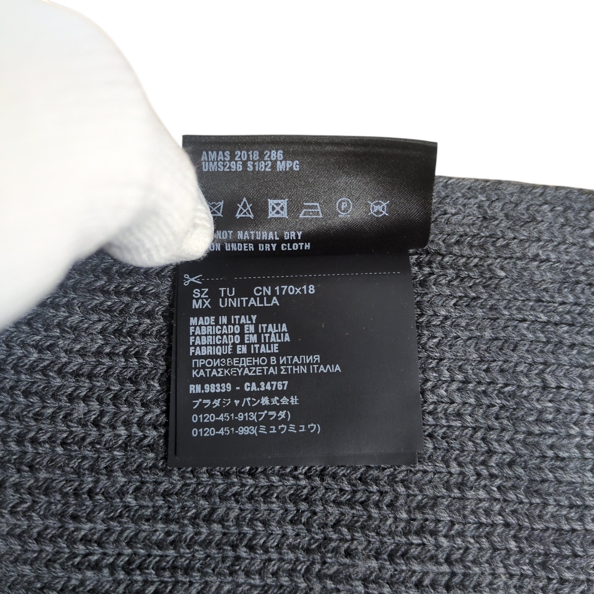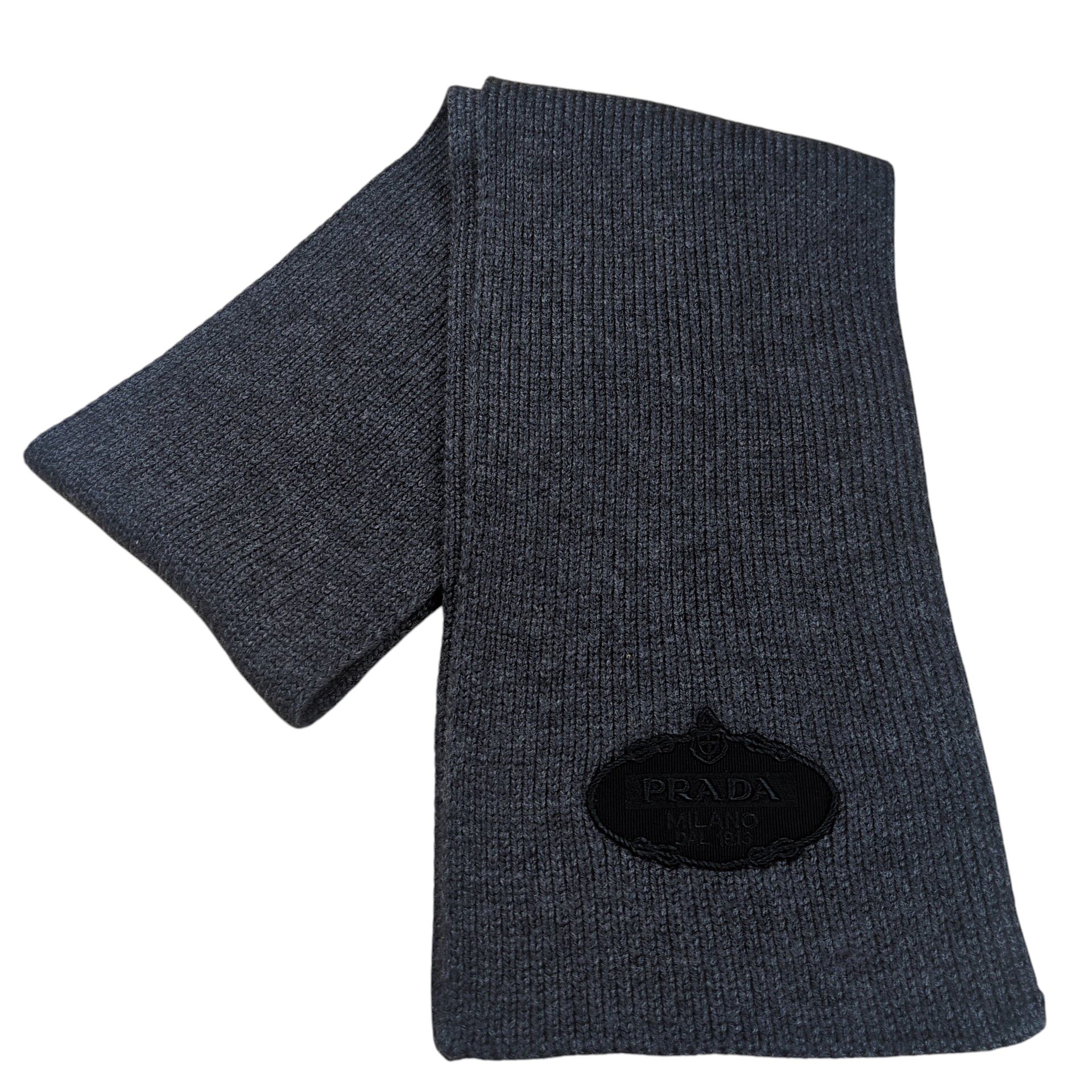 "PRADA" Logo Patch Virgin Wool Muffler