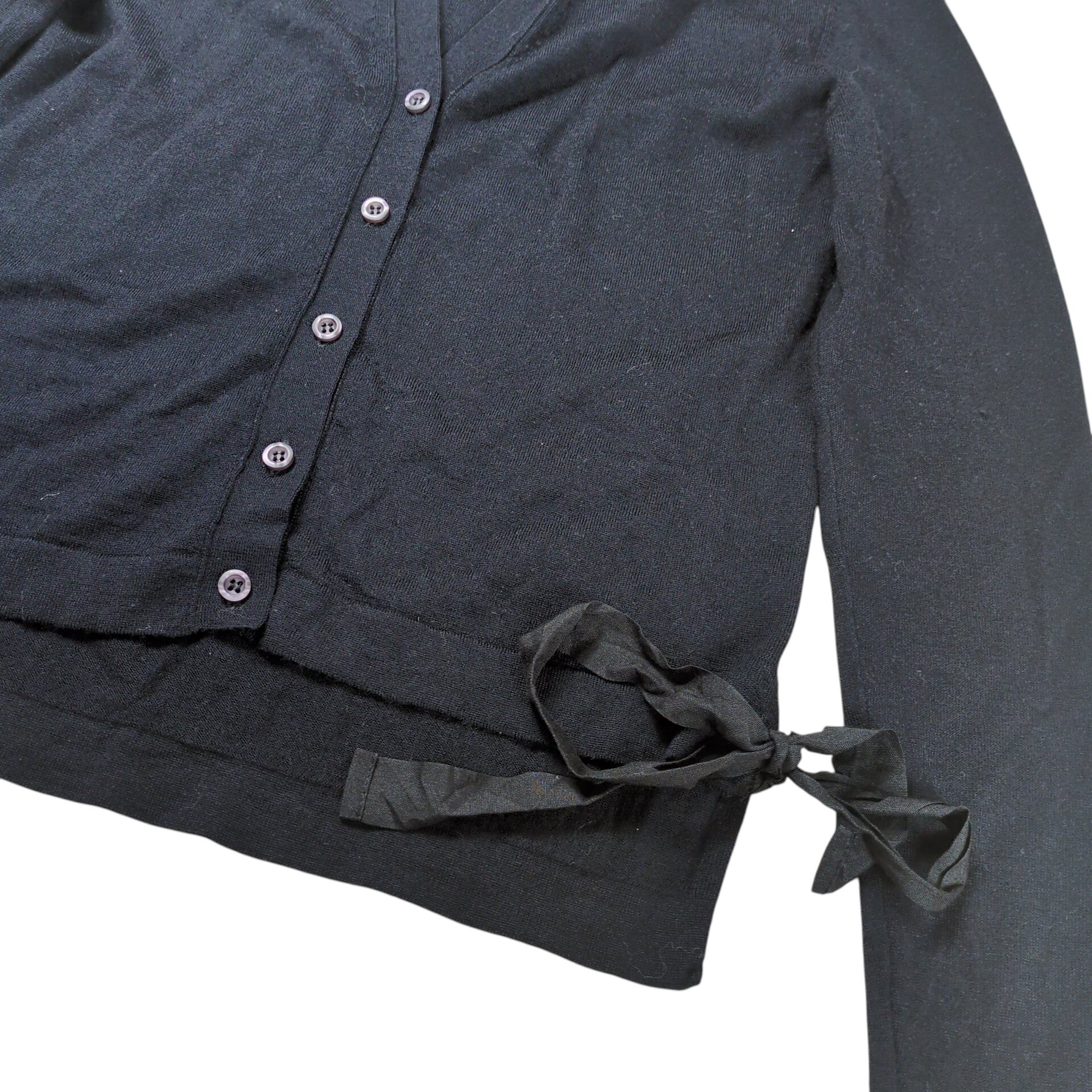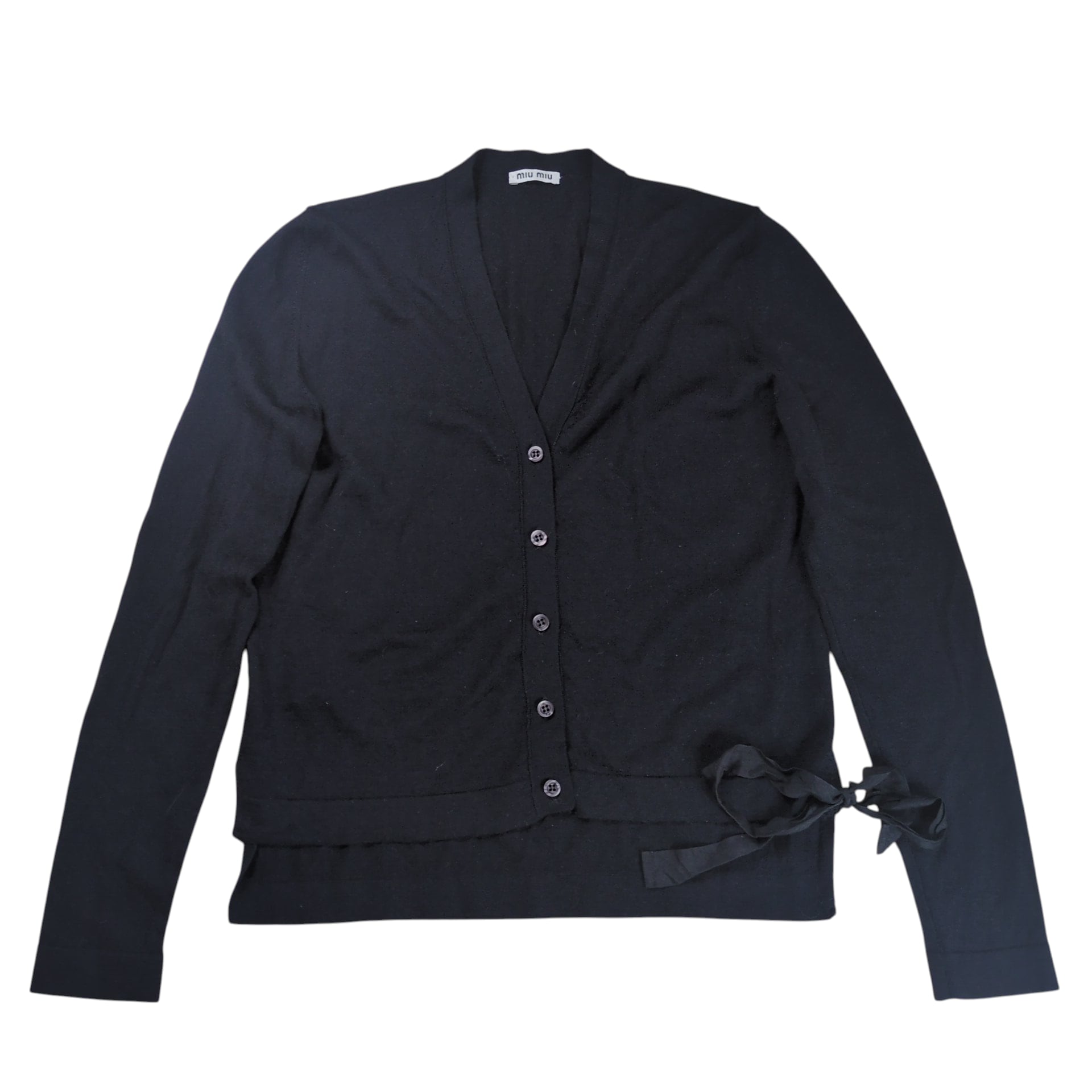 "MIUMIU" Side Ribbon Silk Blend Wool Cardigan