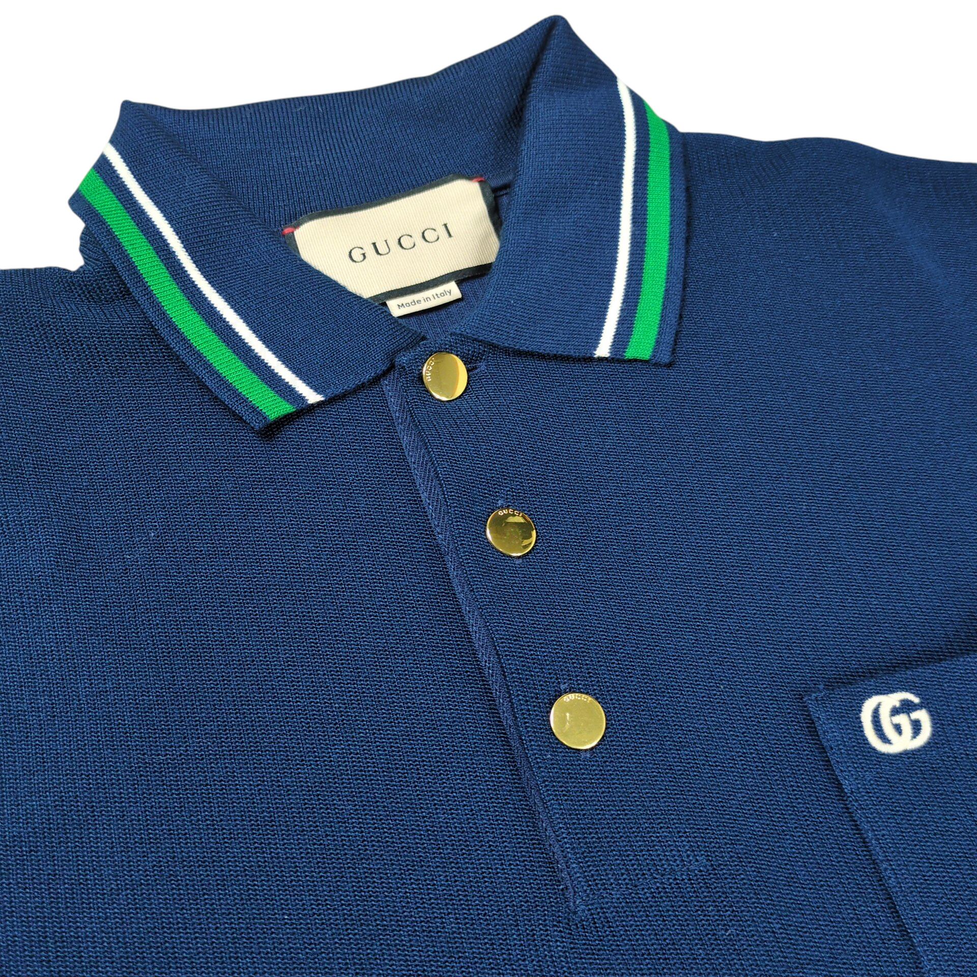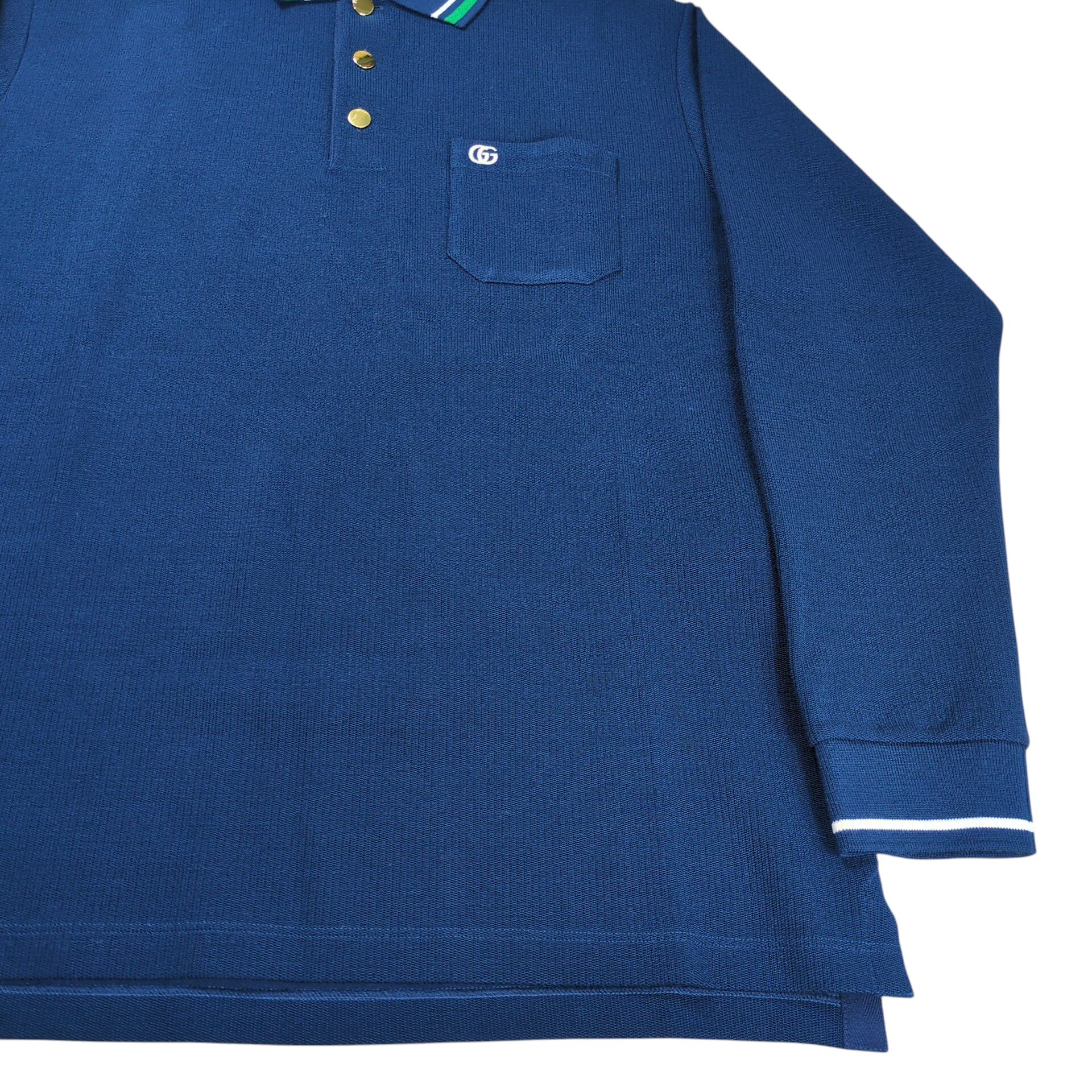 "GUCCI" Wool Blend GG Logo Web Line L/S Polo Shirt
