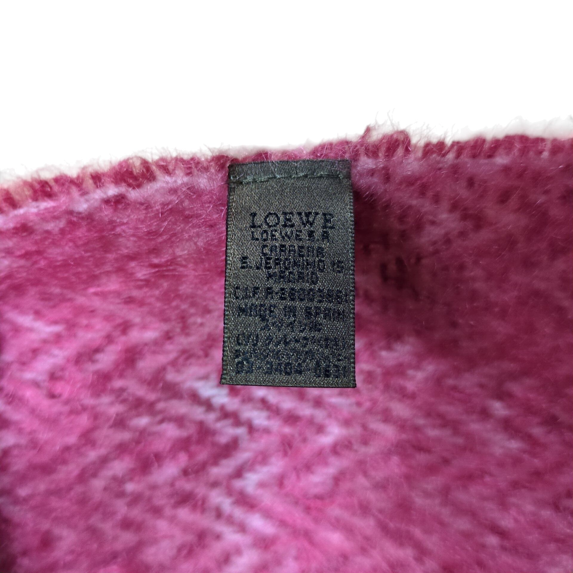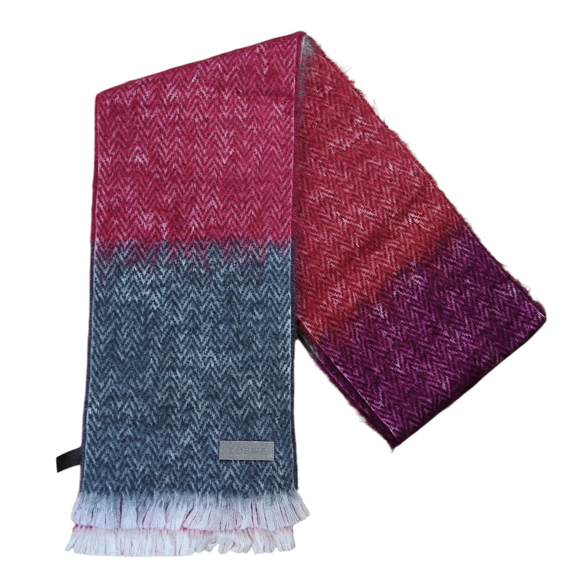 "LOEWE" Leather Logo Patch Gradation Mohair Fringe Muffler